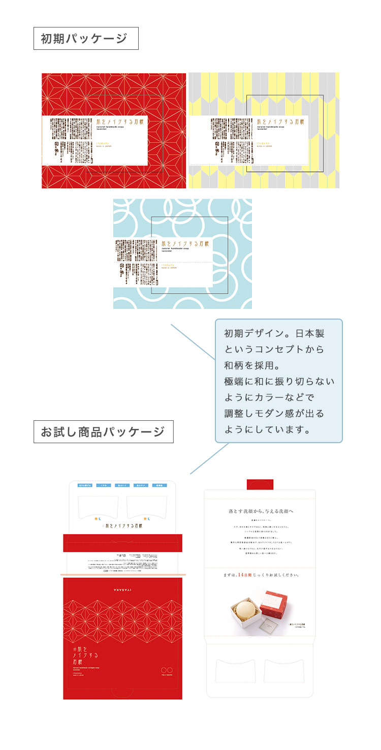 『日本製の高品質洗顔石鹸を販売する』というプロダクトアウト的にスタート。他、業務との兼ね合いのため、初期サイトの作成を外注で行うこととなり、大まかな監修というカタチで携わる。