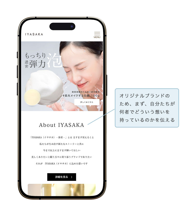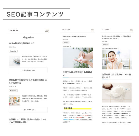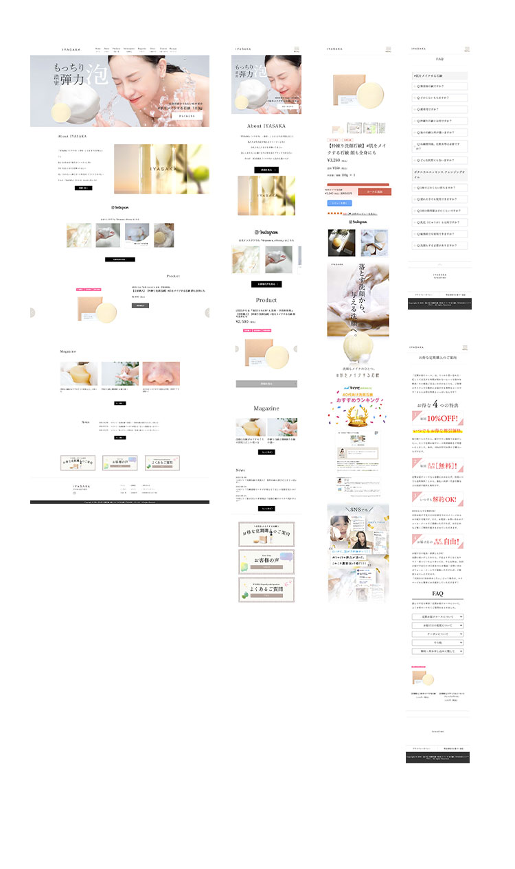 『日本製の高品質洗顔石鹸を販売する』というプロダクトアウト的にスタート。他、業務との兼ね合いのため、初期サイトの作成を外注で行うこととなり、大まかな監修というカタチで携わる。