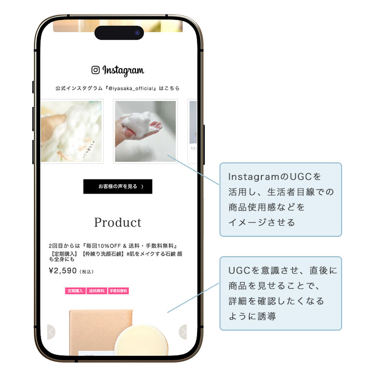 Instagramにてモニター施策、プレゼントキャンペーンを実施し、UGCを作成。UGCはサイトコンテンツとしても使用。